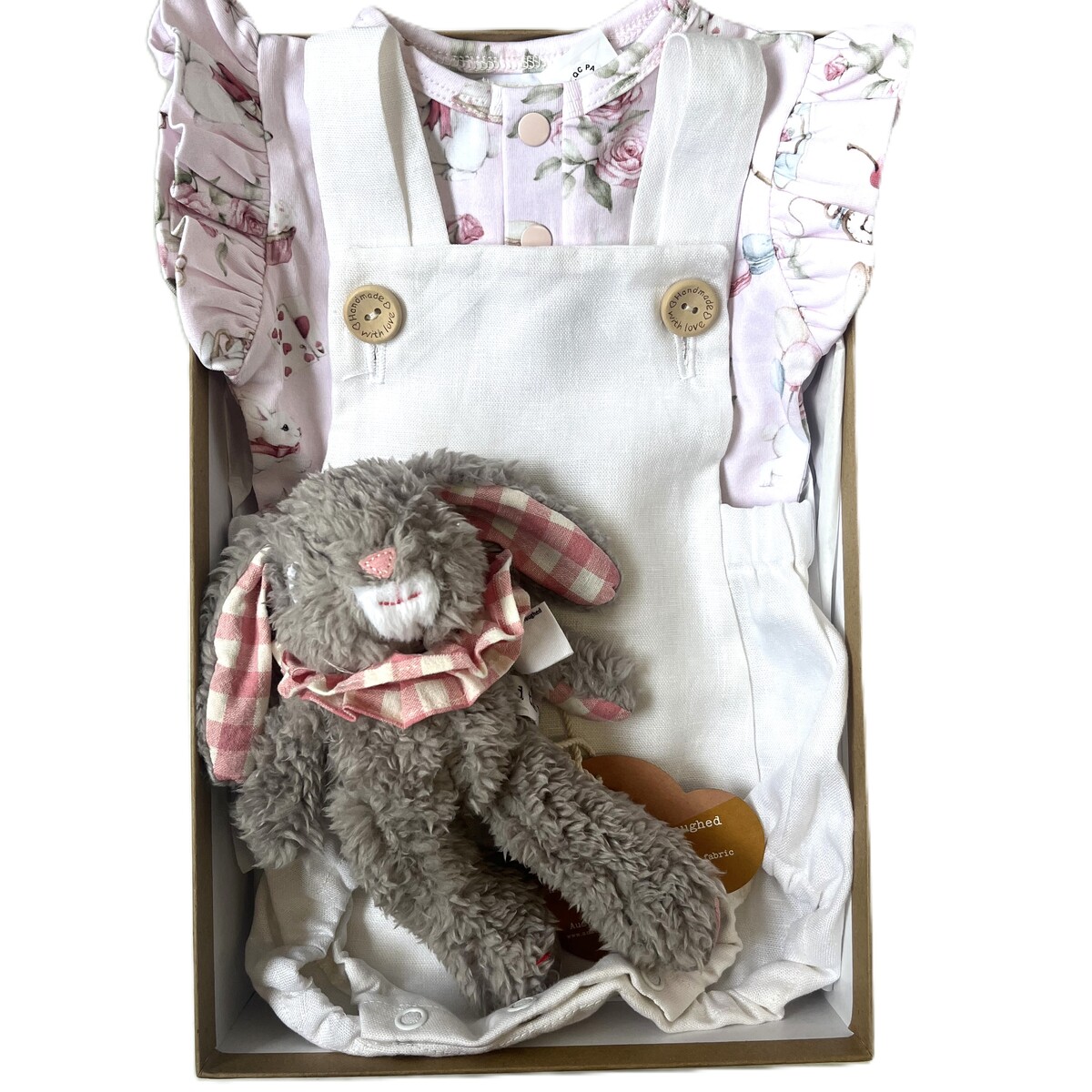 This is a beautifully presented baby gift set. Inside the box, there are: