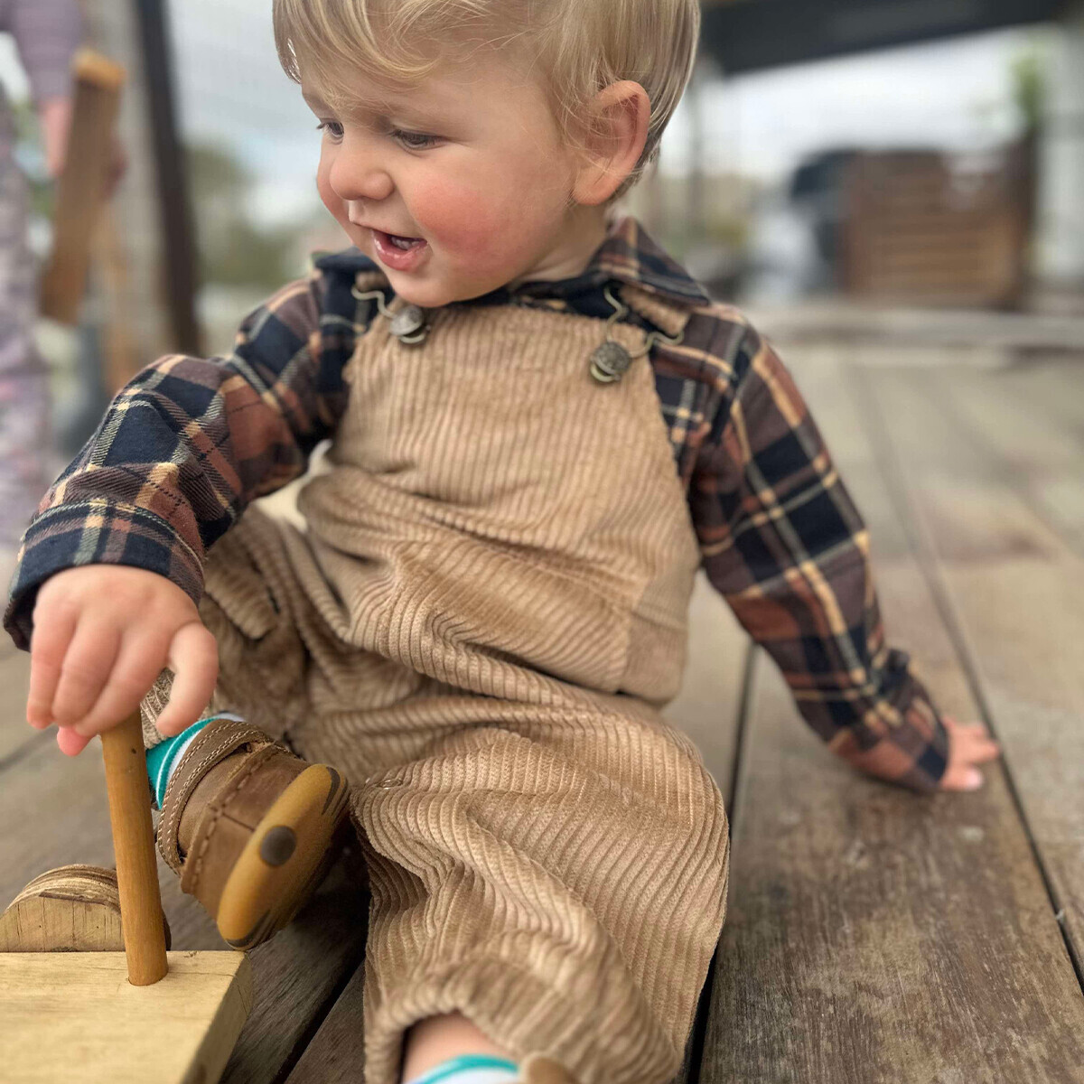 Our adorable overalls are made of soft corduroy fabric in a range of perfect winter colors.