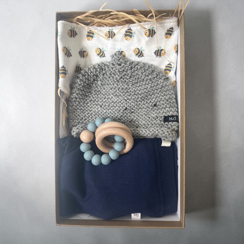 This is a beautifully presented baby gift set. Inside the box, there are: